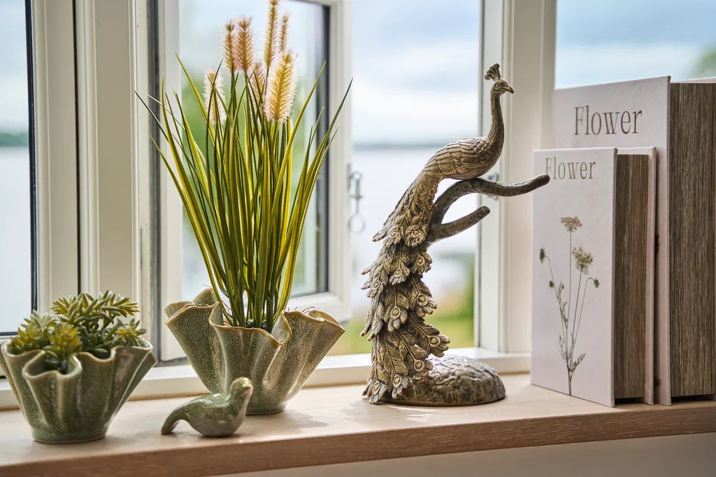 Denna dekorativa konstväxt med gröna strån ger en naturlig och livfull känsla i hemmet. De gröna och gulaktiga tonerna skapar ett realistiskt och mjukt uttryck som passar fint i många olika inredningsstilar.