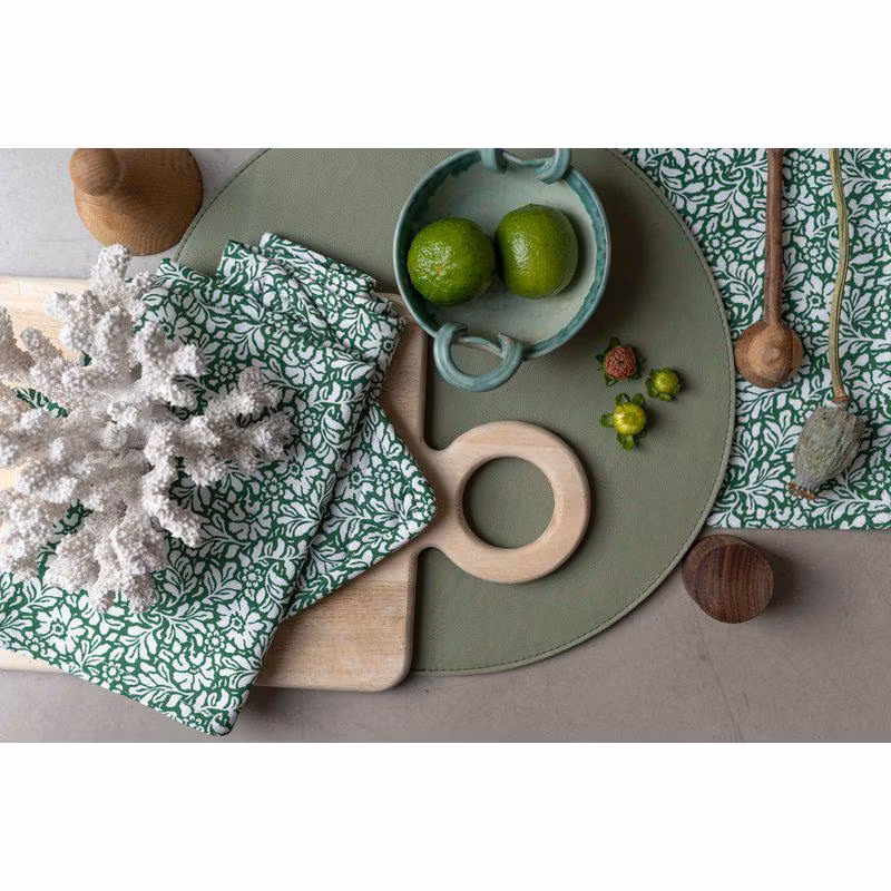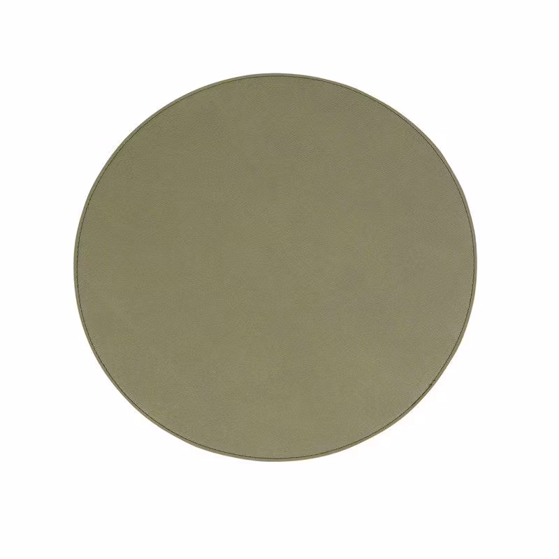 Rund bordstablett som har en snygg och modern design, ytan på bordstabletten är utformad för att efterlikna äkta läder som ger ett lyxigt och elegant intryck. Samtidigt är den enkelt att rengöra och underhålla, vilket gör den idealisk för både vardagliga måltider och speciella tillfällen.