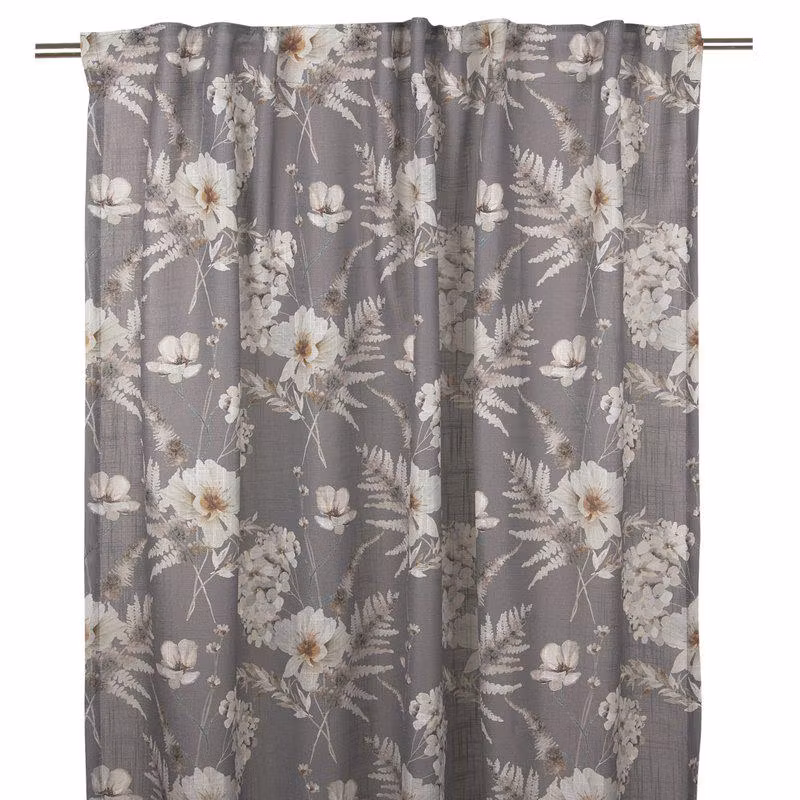 Gardinlängder tillverkad i polyester med ett härligt digitaltryckt blommönster på. Slubeffekten i tyget ger gardinerna en livfull struktur. De har påsytt multiband och kan hängas upp med rynkbandskrokar, fingerkrokar, kanal samt dold hälla. 2X135X250 CM 100% POLYESTER