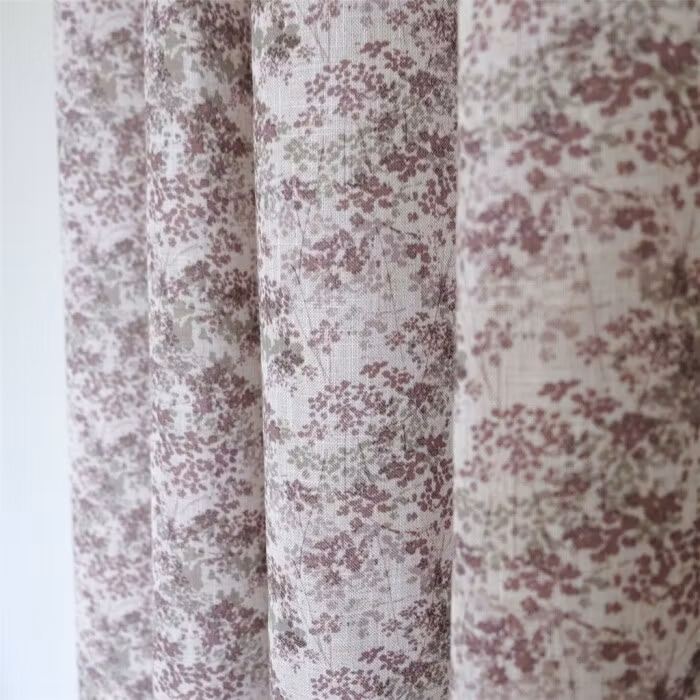Gardinen Almine är en romantisk och stilfull detalj som ger rummet en mjuk och ombonad känsla. Det småblommiga mönstret i rosa och lila toner skapar ett levande men harmoniskt uttryck, inspirerat av naturens egna färgskalor.
